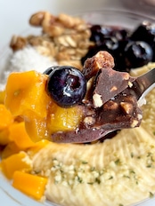 大人気のアサイーボウルにヴィーガンチョコレートを加えたクラッキングアサイーボウル。