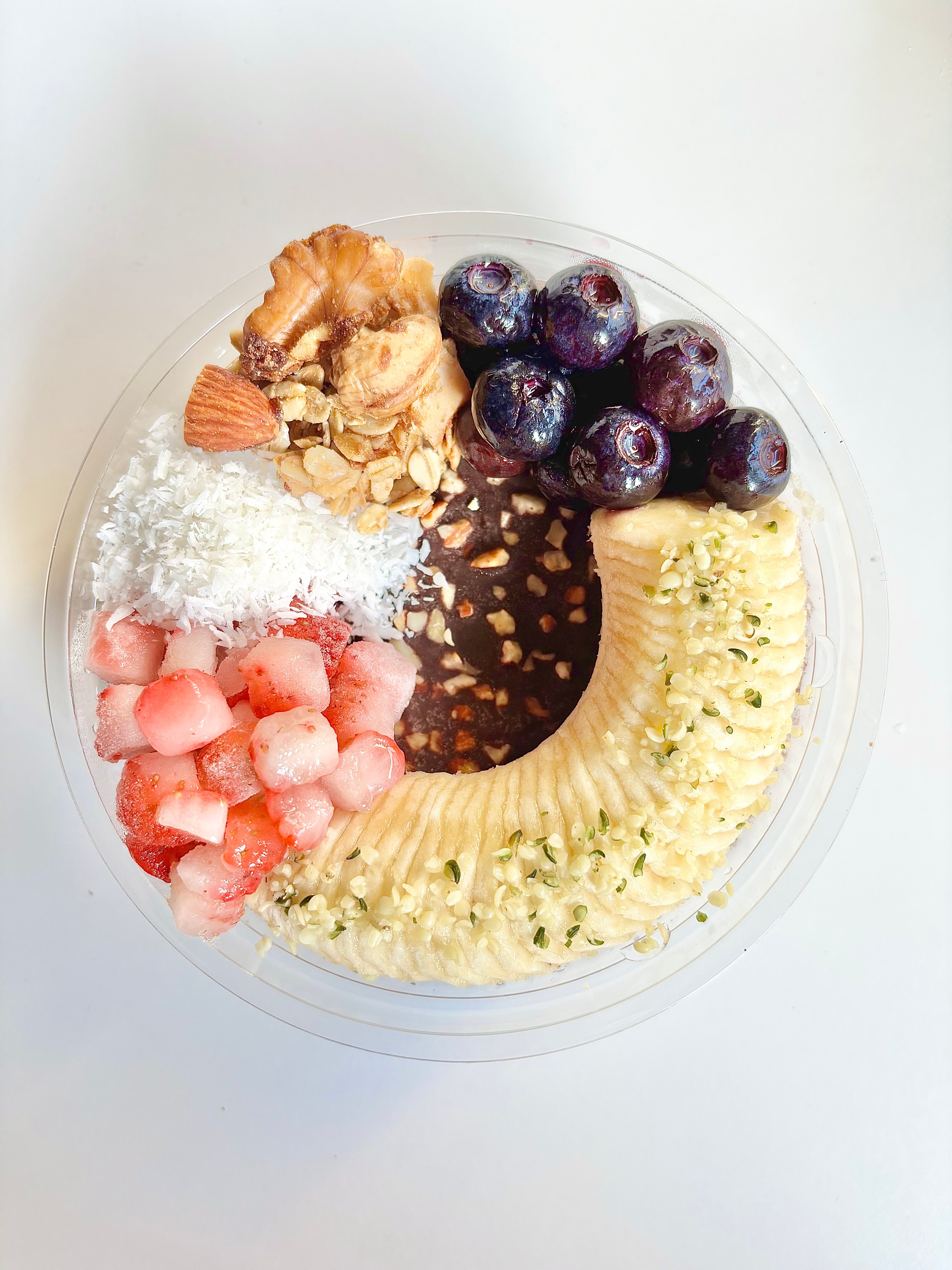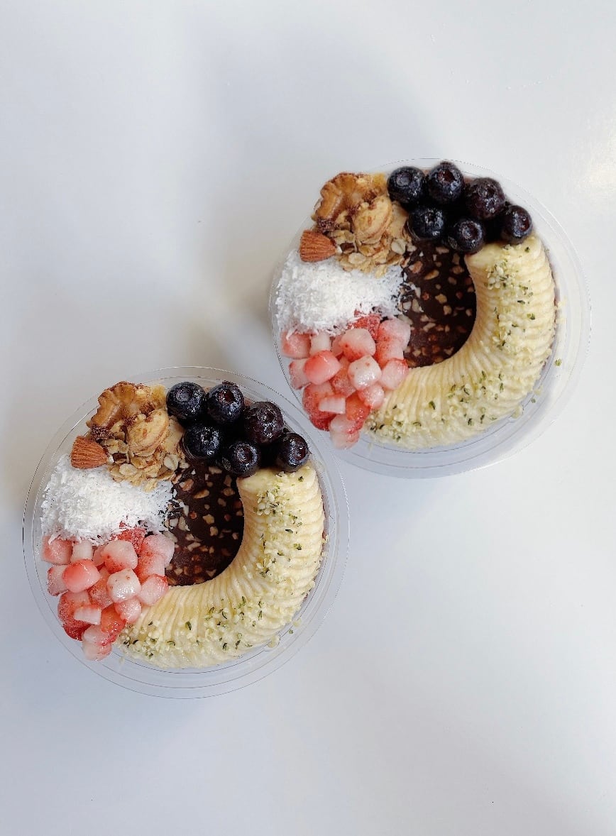 大人気のアサイーボウルにヴィーガンチョコレートを加えたクラッキングアサイーボウル。