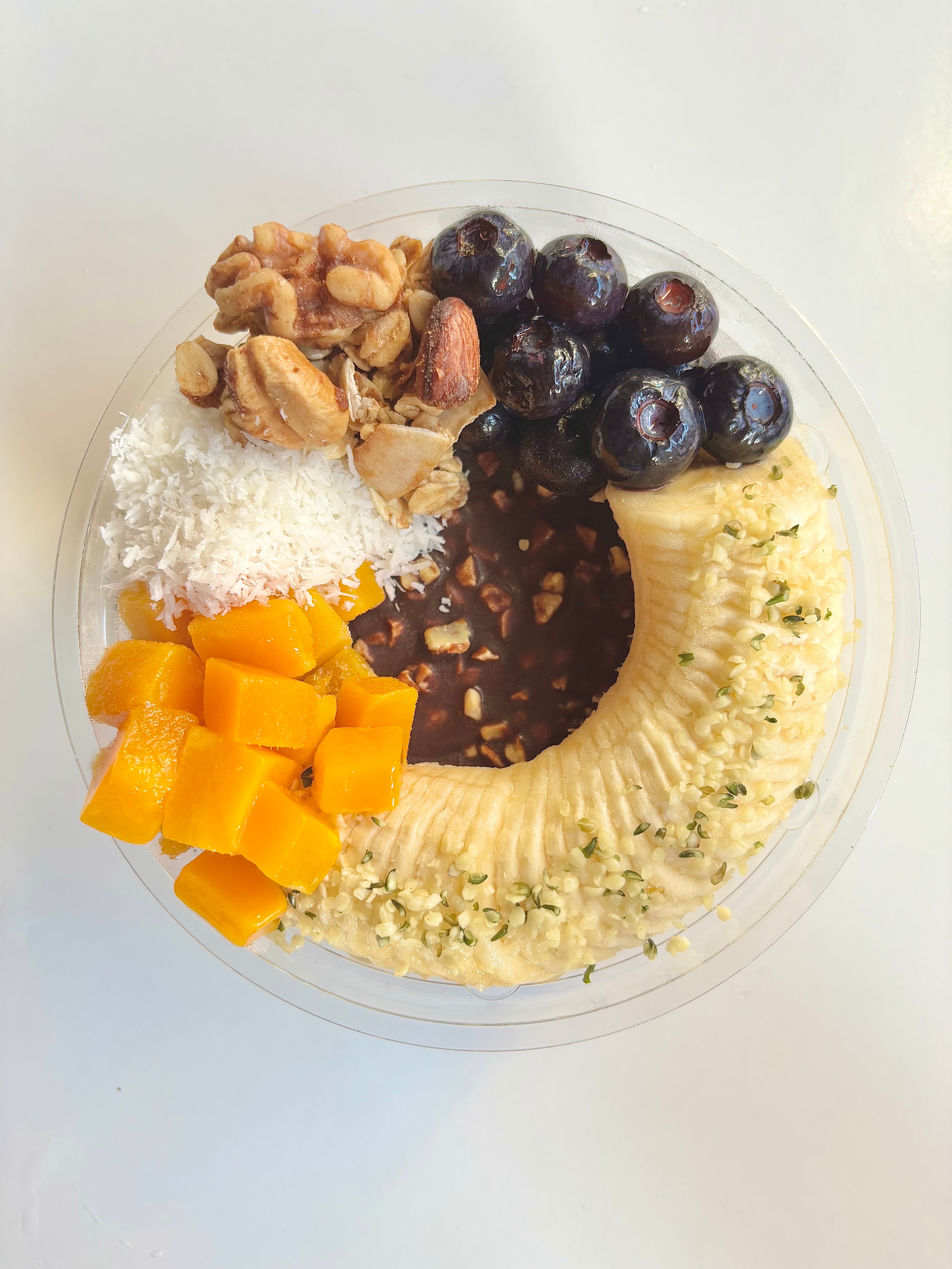 大人気のアサイーボウルにヴィーガンチョコレートを加えたクラッキングアサイーボウル。